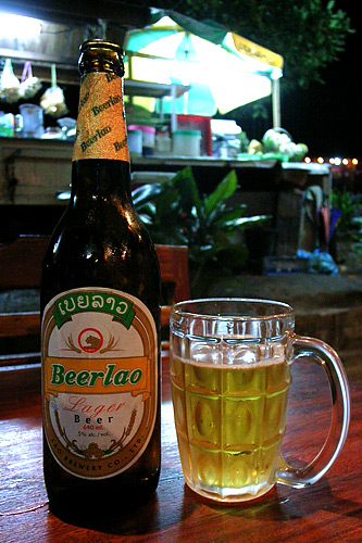 クライマックスを過ぎたのを見計らってメコンを離れると、一軒の食堂に入った。表通りは、昨日までと変わらぬ静けさの中に横たわっている。ついさっきまで渦巻いていた光と音と熱気の残滓が、かすかに、ほのかに漂っているだけだ。その切ない余韻を、ビアラオの泡が吸収し、心と身体に染みわたらせていく。