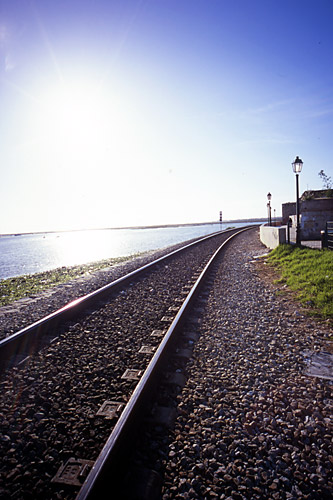 旧市街はそれほど広くないようだ。知らぬ間に縦断してしまったようで、気がつくと線路に突き当たっていた。さきほど乗ってきた列車が通った線路。車窓から眺めた海が、すぐ向こうにあった。正確には、海ではなくラグーンである。