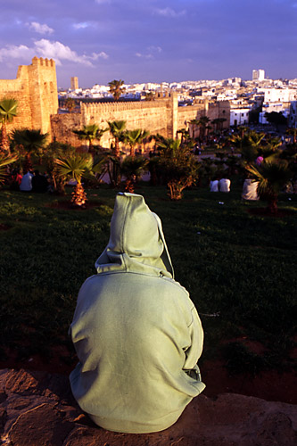メディナの路地は碁盤の目のように整然と走っているようだが、初日の今日は、奥に入り込まず、大通りをまっすぐ進むことにした。しばらくブラブラ歩くと、メディナの反対側へと抜けてしまった。ついでだから、この先にあるらしいウダイヤのカスバまで行ってしまおう。進路を右に取り、数分歩くと、高くて堅牢そうな城壁が見えてきた。あれに違いない。