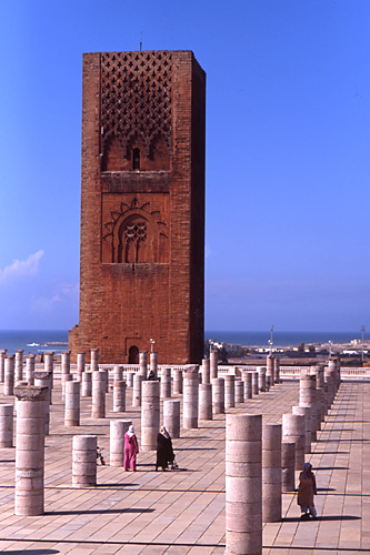 ハッサンの塔は、高さ44m。未完に終わったミナレットである。セビーリャのヒラルダの塔、マラケシュのクトゥビアの塔とともに、12世紀に建造されたマグレブ様式の三大ミナレットと言われている。ヒラルダの塔とクトゥビアは、モロッコ&アンダルシアの旅ですでに訪れているので、この塔を見ることも、今回ラバトを訪れようと思った動機のひとつであった。