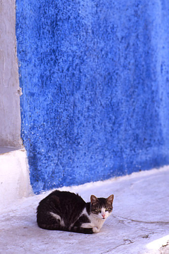カスバをおおかた歩き終えたところで、突然雲が広がりはじめた。かと思うと、雨模様に。散策はあきらめて、屋根のあるメディナに逃げ込む。立ち並ぶおみやげ屋をのぞいてみるも、買いたいものは見つからない。さらに歩いて新市街に戻ると、一軒のカフェで一服することにした。