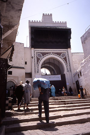 フェスの町は、フェス川を挟んでアンダルス地区とカラウィン地区に分かれている。これまで歩いてきたところはすべてカラウィン地区内だった。そして、これから向かうのがアンダルス地区だ。アンダルスとは、イベリア半島におけるイスラム勢力の支配地域を表し、アンダルシアの語源となった言葉だ。そのアンダルスからの移住者が多かったことから、この地区をそう呼ぶようになったという。モロッコのあとにアンダルシア地方をたずねるつもりなので、この地区の雰囲気を一度味わっておきたかった。