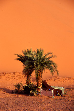 その背に揺られながら、砂丘を覆っている朝の空を驚きを持って見つめていた。この空の色。これまでに見たこともない色合い。水色を、限りなく深く、甘くしたような色。日本では決して見ることができない空の色。その下に広がる砂漠はピュアなオレンジ。混じり気のない色で構成される世界。その幻想世界で、確かに僕は一夜を明かしたのだ。