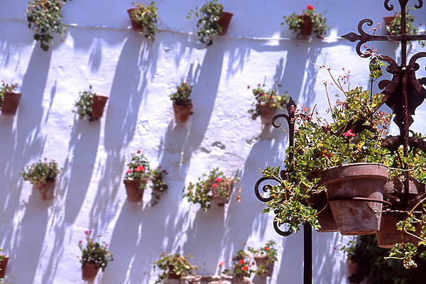 コルドバで楽しみにしていたのが、パティオ見学。白壁に行儀よく飾られた鉢の数々。咲き誇る色とりどりの花々。最もアンダルシアらしいまばゆい光景。