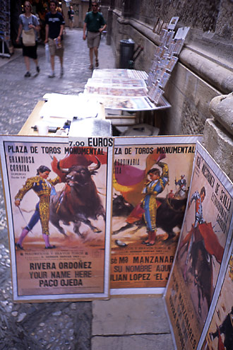 オスタルを出ると、ゴメレス坂を下った。突き当たりのヌエバ広場には、カフェが何軒か並んでいた。その一軒に入ると、サンドイッチとコーラを注文。軽くランチを済ませると、グラナダの街中から観光を開始することにした。まずは、王室礼拝堂を見学。続いて、お土産屋を冷やかしながら近くの路地を散歩した。 |