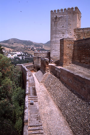 レコンキスタ(国土回復運動)が勢いを増す中、1212年、北アフリカとアル・アンダルスを支配していたムワッヒド朝とキリスト教軍が激突。その結果は、ムワッヒド朝の大敗。この地におけるイスラムの支配権は完全に失われようとしていた。グラナダを首都とするナスル朝が奇跡的に成立したのは、その20年後のこと。そのナスル朝が、なにをおいてもアルカサバの建造に着手したのには、こうした危機的な時代背景があった。