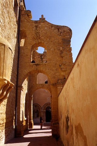 この大聖堂があった場所には、かつて大神殿が築かれていたという。この頂上は、古代ギリシャ時代はアクロポリスだったところであり、都市国家アグリジェント(当時の名はアクラガス)で最も神聖な場所だった。けれども、いまではそのアクロポリスと大神殿の面影はまったくといってよいほど残っていない。数日前に訪れた、同じギリシャ植民都市であるセリヌンテを思い出した。面影のなさという点では、セリヌンテもアグリジェントもまったく同じだ。ただし、セリヌンテのアクロポリスには遺跡のかけらが一面に散在していて、少なくとも廃墟的な雰囲気は味わえた。一方、このアクロポリスは、遺跡の破片さえ存在しないほど変わり果てしまっている。その代わり、ここでは中世の教会やイスラム的な路地を見て回ることができる。