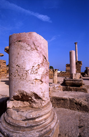先ほど訪れた劇場と同じく、この浴場も、建造したのはカルタゴではなく、カルタゴを滅ぼしてこの地を支配したローマである。敷地に入ってみると、予想以上の広大さ。ローマ人の風呂好きぶりに改めて驚き、あきれ果ててしまう。風呂好きが住む日本にだってこんな規模の公共浴場はきっとないだろう。