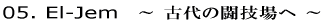 エルジェムは、何の変哲もない小さな町。そんな町まで、ケロアンからわざわざルアージュを乗り継いでやってきたのは、ある有名な遺跡を見たかったからだ。ローマ帝国の時代に建造された、当時の最高の娯楽施設、円形闘技場である。アフリカで最も保存状態がよいとされ、世界遺産にも指定されていると聞いては、訪れないわけにはいかない。