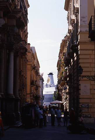 船を下りて真っ先に感じたのは、風の爽やかさだった。チュニジアとは狭い海ひとつ隔てただけなのに、シチリアの風の方が明らかに涼しく、爽やかなのだ。目の前に広がるシチリアの街並も、初めて見るのになぜか無性に懐かしい。頭の中で、「ニューシネマ・パラダイス」のあの哀愁を帯びたテーマ曲がエンドレスに鳴り響く。入国審査時の悪い印象も一気に吹き飛んでしまった。 |