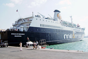 そうだ、いま自分はフェリーに乗っているのだった。しかし、当のフェリーは動いている気配がない。やおらシートから起きあがると、窓に近寄った。桟橋が見える。すでにシチリアに到着していたのだ。時計の針は7時を指していた。チュニジアとの間には時差があるので、いまは8時ということか。昨日は出国までスリル満点の展開だったので、さすがに疲れがたまったのか、慣れない夜行フェリーにもかかわらず、到着に気づかないほどぐっすり眠ってしまったのだ。 |