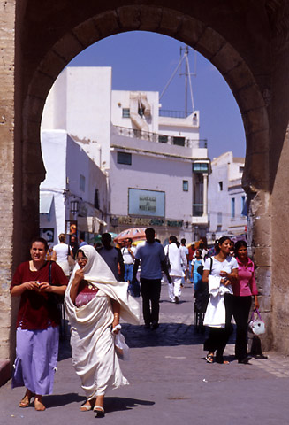 ルアージュステーションは郊外に位置しているので、タクシーを捕まえてメディナ(旧市街)に向かった。数分も走ると、旧市街の入り口、ショハダ門に面した広場に到着した。目当ての宿はこの広場の一角にあるはずだった。ちょうど右手、目の前のカフェの奥にある建物がそれらしい。