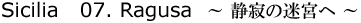 とある書籍の表紙だった。高台から見下ろすように撮られたのだろう、古い教会と住宅に挟まれた石段が、目の前から下に延びている。その石段の終わりからさらに数百メートル下方にある、狭くて細長い丘いっぱいに、薄汚れた古い家々がぎっしりと並び立っている。時代から取り残されたような寂しげなたたずまい。見たとたん、無性に旅情をかきたてられた。あてどなくここをさまよってみたい。写真のキャプションには「ラグーザ・イブラ」とあった。
