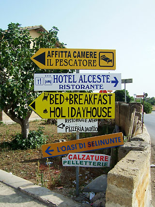 数分後、少年に促されてバスを降りた。そのまま少年の後について別のバス停へ。しかし、8時半に駅を出たであろうセリヌンテ行きのバスは、すでにここも通過してしまったようだ。ぼくがトラーパニで遅れずにバスに乗っていれば間に合ったかもしれない。でも、いまさら悔やんでもしょうがない。そんなことを考えている間に、少年は、近くの店の人に次のバスが来る時刻をたずねてきてくれた。