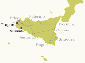 セリヌンテに行くには、まずこのトラーパニからバスか電車でカステルヴェトラーノという町に出る必要がある。早朝発の電車はないので、バスに乗っていくことに。発車時刻は6時50分。このバスを逃してしまうと、次の便はなんと12時50分までないので、乗り遅れは絶対に許されない。カステルヴェトラーノに着いたら、セリヌンテ行きのローカルバスに乗り換える。観光案内所でもらった時刻表によれば、この遺跡行きバスも1日数本しか運行していない。8時半発の便を逃すと、これまた12時半まで便がない。これから乗るバスがその8時半の乗り継ぎ便に間に合うかどうかは微妙なところ。スリリングな移動になりそうだ。