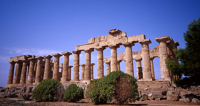 目の前に建っているE神殿は、女神ヘラを祭ったものとされている。三つの神殿の中では最も新しく、紀元然5世紀中頃、ちょうどセリヌンテの黄金期に建造されたものだ。その数十年後、セリヌンテは北方に進出し、ライバル都市のセジェスタに攻め込んだ。しかし、それがかえって自身の寿命を縮めてしまう結果となる。