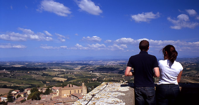 その頂上から眺めるトスカーナの平原。