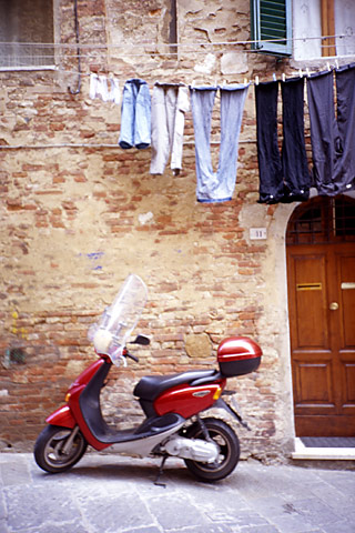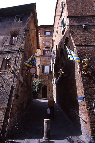 マンジャの塔とドゥオモを見てしまい、宿題はあらかた片付いたので、残りの時間は、中世さながらの街並みをのんびり歩き回ってみることにした。じつは、もうひとつ宿題が残っているのだけど、それは最後のお楽しみ。とりあえずは、気ままに歩いてみることにする。
