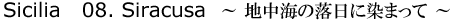 二両編成の列車は、ほとんどがらがら。シチリアの列車の旅はつくづくのんびり、味わい深い。2時間ほどゴトゴト心地よく揺られたのち、列車はひっそりと静かに終点のシラクーザに到着した。プラットフォームに立つ。澄んだ青空。まばゆい太陽。ほのかな潮の香り。ゆったりとした時の流れが漂う。ここがあの有名な古都なのかと驚いてしまう。