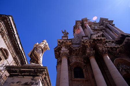 思えば、数日前訪ねたアグリジェントのコンコルディア神殿も、このドゥオモと同じように、のちに教会に転用されたからこそ、あのような勇姿をいまも保っているのだ。裏を返せば、そうでない裸のままの神殿は、度重なる戦争や大地震でほとんど破壊され、瓦礫の山と化してしまったことになる。そんな事実からも、シチリアの厳しい侵略と災害の歴史がうかがい知れるのである。