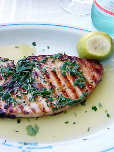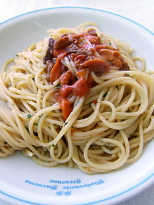 注文したのは、ウニのパスタと、メカジキの網焼き。