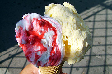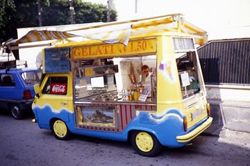 ギリシャ劇場へと通じる一本道の両側には、土産物屋がずらりと連なっている。食指を動かされるようなものはなかったが、この暑さの中では、冷たいジェラートの誘惑だけには勝てなかった。