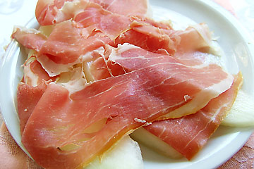 地中海を見下ろし、タウロ山を間近に仰ぐ高台に築かれたタオルミーナ。町を貫くのはウンベルト通り。この通りをタウロ山側に折れればどの道も上り坂、海側に折れれば下り坂と、構造はわかりやすそうだ。大通り沿いのレストランは高そうなので敬遠し、海側に折れてみることにした。坂道を下っていくと、いつのまにやら路地が錯綜する空間に迷い込んでしまった。わかりやすそうでいて、なかなか探索しがいのある町のようだ。どの路地にも、雰囲気のいいレストランがテーブルを並べている。そのなかの一軒に入り、生ハムメロン、海老、カッサータの昼食を取った。