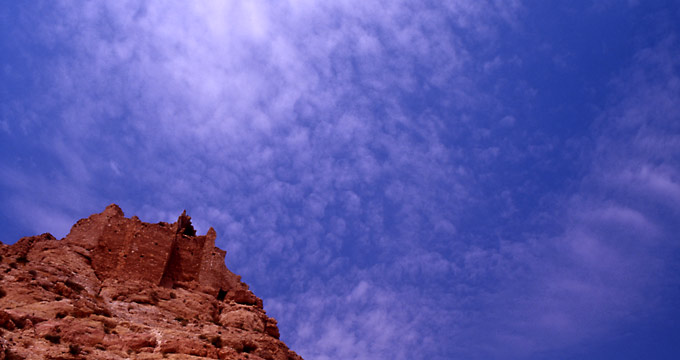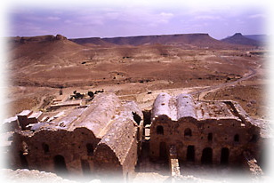 クサールを見終えると、眼下に広がる景色に目を向けた。そこにあるのは、ひたすら乾いた大地と丘陵、そして点在する白いモスクだけだ。 |
