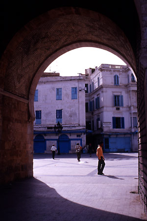 門をくぐり、正面の狭い道に入ってみる。そのまま奥へと進む。両側には土産物屋がポツポツと。残りの店はすべて閉まっている。どうやら、チュニスでは日曜が休業日らしい。活気が見られないのは寂しいが、そのぶん、気ままに歩き回れそうだ。 |