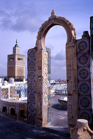 グランドモスクに突き当たると、迂回するように時計方向に路地を進んだ。昨日の土産物屋にたどり着くと、屋上に上った。評判通りの素晴らしい眺望だった。カラフルなタイルとグランドモスクが一枚の画として見事に成立している。残念なのは、依然として雲が多く、薄日しか差していないことだった。タイルもミナレットも本来の映えを見せていない。こんなことなら、快晴だった昨日、彼にだまされたフリをしてここに上っておけば良かった。ちょうど夕日が射し込んで、このタイルもさぞがし美しく輝いていただろうに…。短期の旅では、条件のいいときに見ておくべきものは見ておくべきなのだ。 |