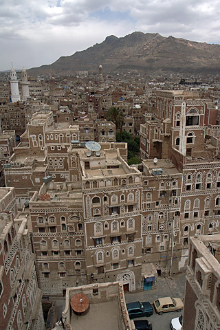 屋上から四方を見渡し続けていた。胸の中に浮かんでいるさえない第一印象をどうやって打ち消せばいいのか、どうやったらプラスへとひっくり返せるのか、あるいは、そのまま受け入れるほかないのか。自分でもよくわからなかった。ひとつ言えるのは、自分なりの旅の経験則から、当初は期待はずれと思われた場所であっても、2日、3日と見て回っているうちに、勝手に妄想していたイメージの呪縛から解き放たれ、次第にその場所本来の魅力を見いだしていき、改めて深く強く惹かれていくこともまた多いということだった。たとえば、同じ世界遺産でいうならば、アンコールワットがその典型だったし、ヨルダンのペトラもその一例だった。どちらも、当初は旅行前のイメージとのギャップに、あれ、と軽く失望を覚えたのだが、最終的には「やっぱりすごかった」と興奮冷めやらぬままに帰国し、「また訪れたい彼の地」になった。実際、アンコールワットはそれから数年後にまた訪れ、それでも物足りない、また行かなくてはと思っているくらいだ。では、果たしてここはどうだろう? サナアは? イエメンは? これからの旅路で素晴らしい表情を見せてくれるのだろうか?