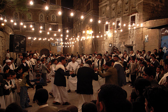 そこでは、大勢の観衆に囲まれて、すでに男たちが祝いの踊りを披露していた。